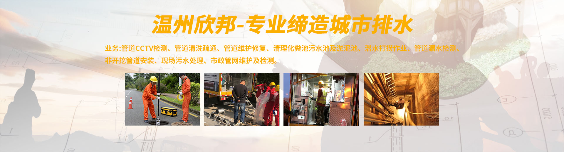 溫州市欣邦管道工程有限公司成立于2016年,本公司有一班熱愛排水管道、清掏化糞池專業的技師。從事地下管道修復、管道檢測、市政管網清淤、市政管道維護、污水池現場處理、管網排查、光化管道修復、非開挖鋪設、探測、修復地下管道。溫州市欣邦管道工程有限公司有分布在全市多處的快速機動服務車。由專業的工程技術人員,集豐富經驗、先進設備、科學方法竭誠為您提供排水系統的全面服務。